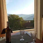 На территории есть терраса, с которой открывается вид на горы.